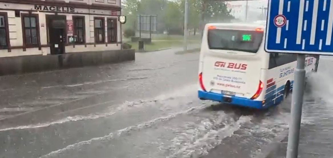 Česko zasáhly první silné bouřky, v Českých Budějovicích zatopily několik ulic