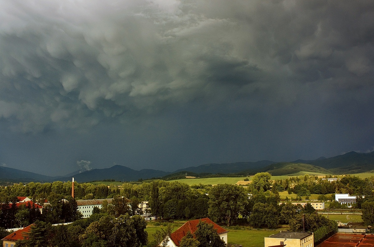 Krásné rozvinuté oblaky typu mammatus 19.7.2012 v 18:14 zhruba 20 minut po bouřce - Martin na Slovensku, fotoaparát Canon EOS 450D, expozice 1/30 sekund, clona 9, autor: Viktor Čech Větší rozlišení
