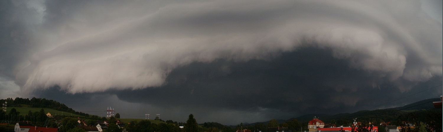 Shelf cloud - nasávání vlhkosti z lesa a její kondenzace 22.8.2012 08:30 - Velké Svatoňovice, fotoaparát Olympus SP510UZ, expozice 10/800 sekund, clona 2,8, autor: Tomáš Prouza