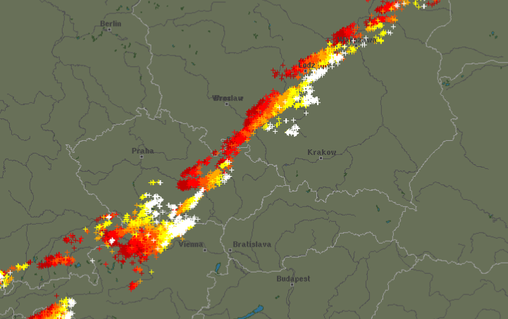 Blesky dne 10.7.2020 mezi 20:30 až 22:00 - na jihu Čech se vyskytovaly bouřky, které postupovaly dále na Vysočinu