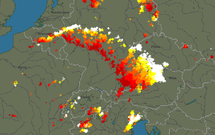 Blesky dne 29.6.2021 mezi 17:00 až 21:00 - přes Česko přecházelo derecho