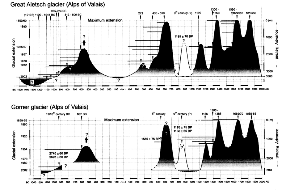 Před několika tisíci lety došlo k dramatickém úbytku ledovců v Alpách, jejich rozsah byl ještě nižší než dnes