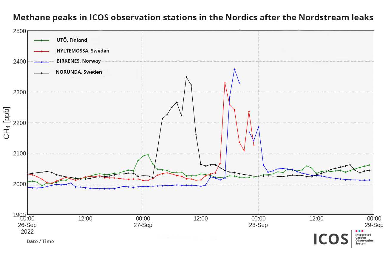 Z poškozeného plynovodu Nordstream uniklo značné množství metanu, zvýšené koncentrace naměřily stanice i ve vzdáleném okolí