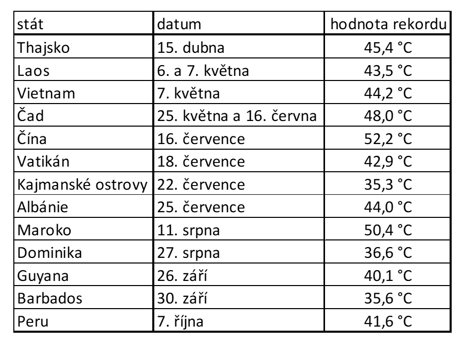 Nová absolutní maxima byla letos dosažena ve 13 státech světa
