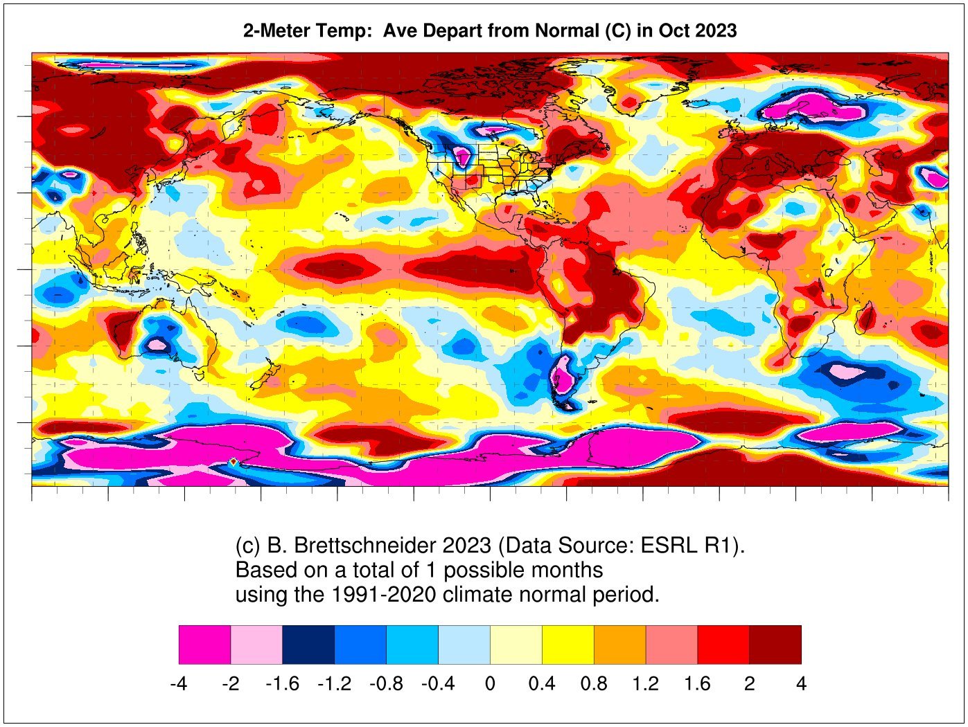 Pořadí globálních průměrů měsíčních teplot v roce 2023 podle různých databází
