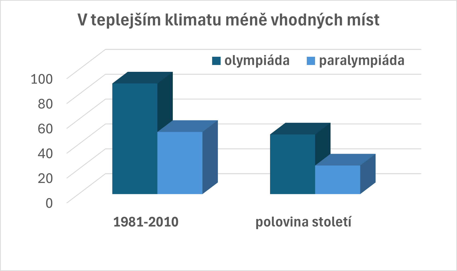 V teplejším klimatu bude ubývat lokalit vhodných pro pořádaní zimních para/olympijských her (údaje pro polovinu století odpovídají střednímu vývoji emisí)
