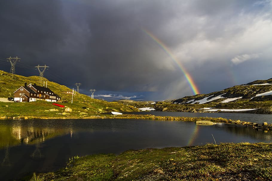 Typická podoba duhy v hornatém terénu Havajských ostrovů