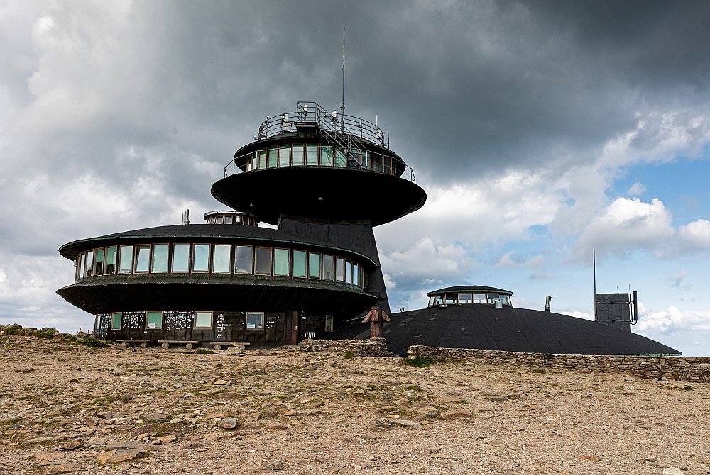 Polská meteorologická observatoř na Sněžce - horní disk nese meteorologickou zahrádku