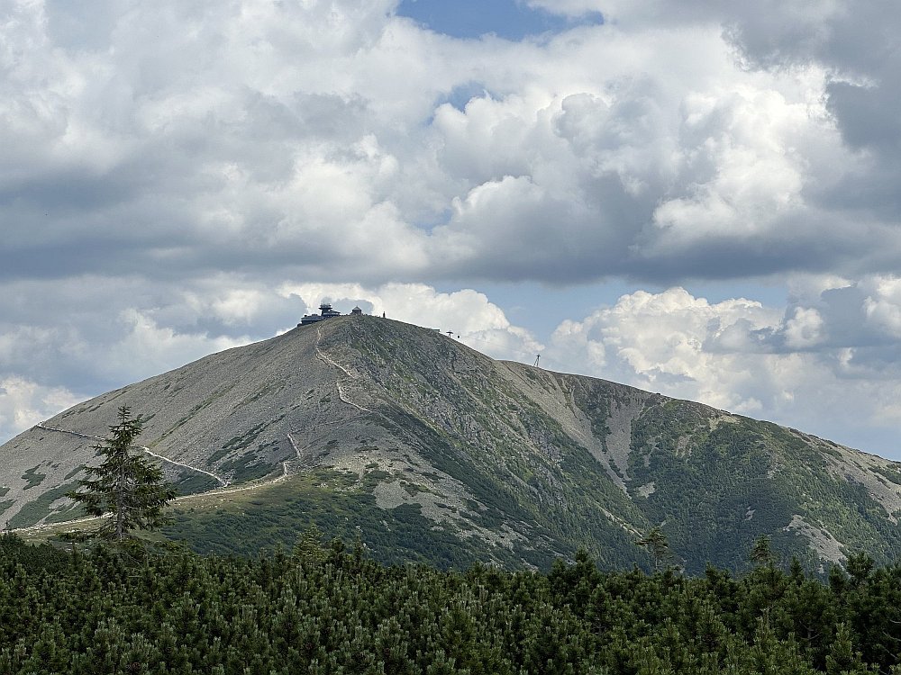Výhled ze Sněžky směrem na západ - Sněžka je nejvyšším bodem Krkonoš, který po dlouhou dobu přitahuje i meteorology