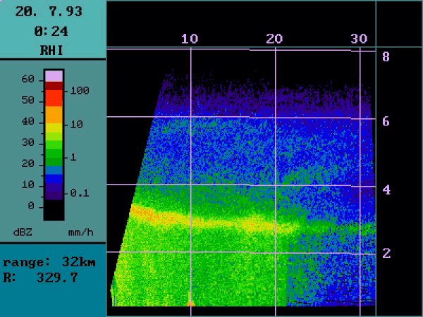 Obr. 2: Bright band ve výšce kolem 3 km, zdroj: Flame.org