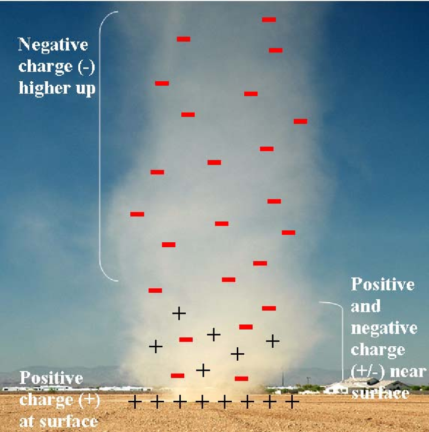 Idealizované rozložení elektrického náboje v prachovém víru, zdroj: ars.els-cdn.com