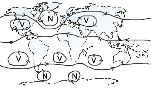 Oblasti vysokého a nízkého tlaku - místa, kde nejčastěji vznikají tlakové níže a výše