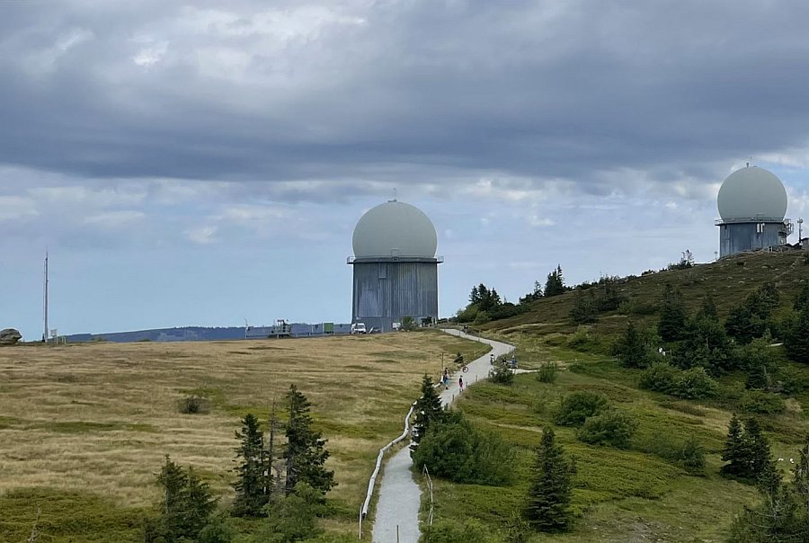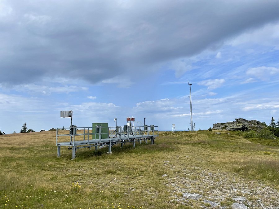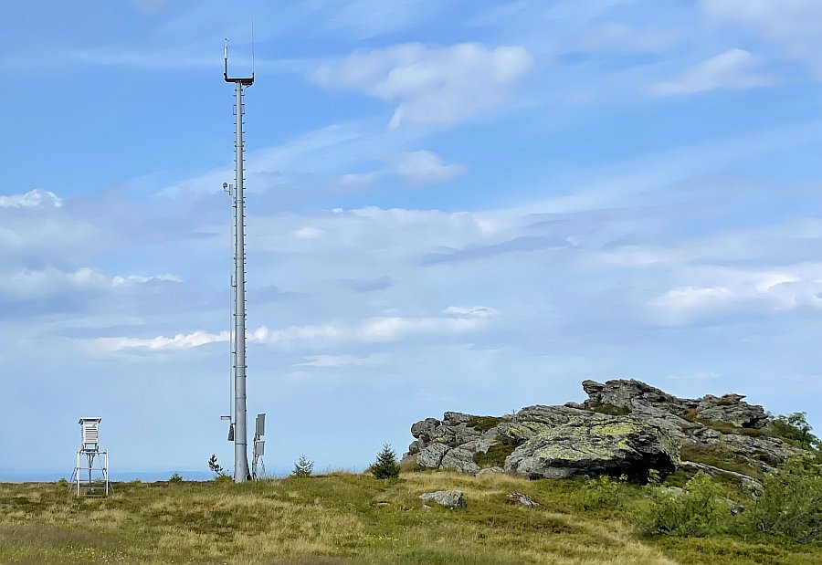 Umístění meteorologické stanice (stožár a budka vlevo na obrázku, vpravo jsou naopak dvě radarové věže sloužící NATO) na vrcholu Velkého Javoru