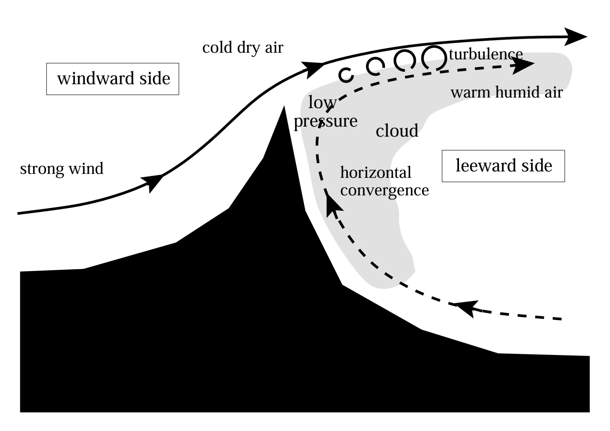 Obr. 2 Schematické znázornění vzniku vlajkového oblaku
