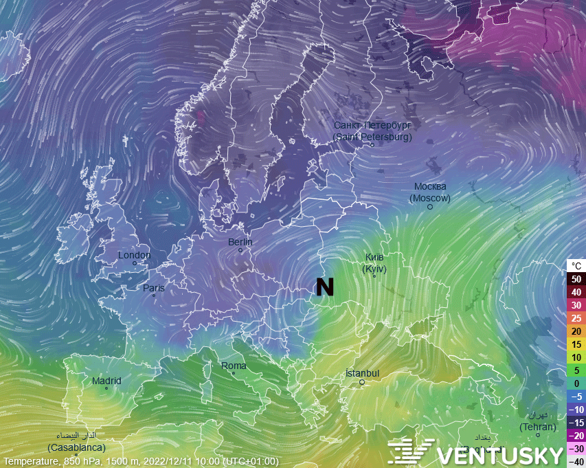 Obr. 4 Denní průměrné teploty v hladině 50 hPa (cca 18 km) pro území 60-90° s. š. v zimě 2019-2020 (modře) a v zimě 2020-2021 (červeně) v porovnání s dlouhodobým průměrem za roky 1979-2021 (černě) doplněné o směrodatnou odchylku (šedě)