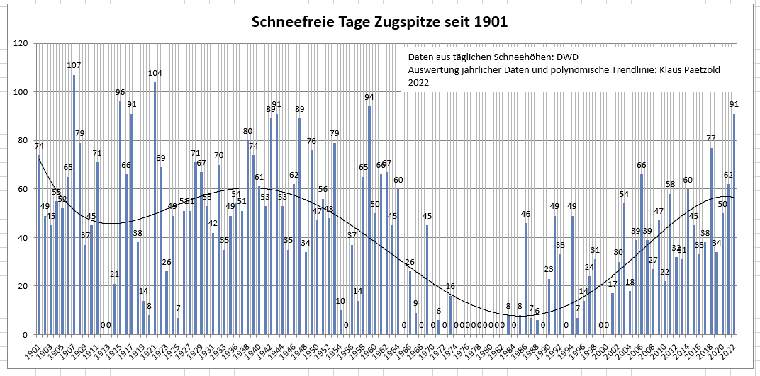 Tající ledovec Schneeferner během léta na jižní straně vrcholu - v 19. století ještě pokrýval v podstatě celou oblast zachycenou na fotografii