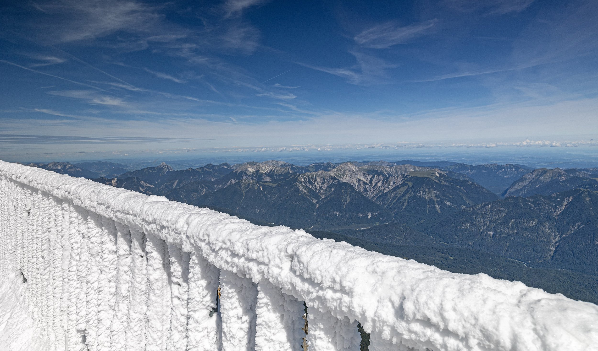 Zugspitze dne 8. srpna 2023 - vrchol je sice nejchladnějším místem v Německu, ale i tak zde tak silnou námrazu v srpnu uvidíte jen zřídka