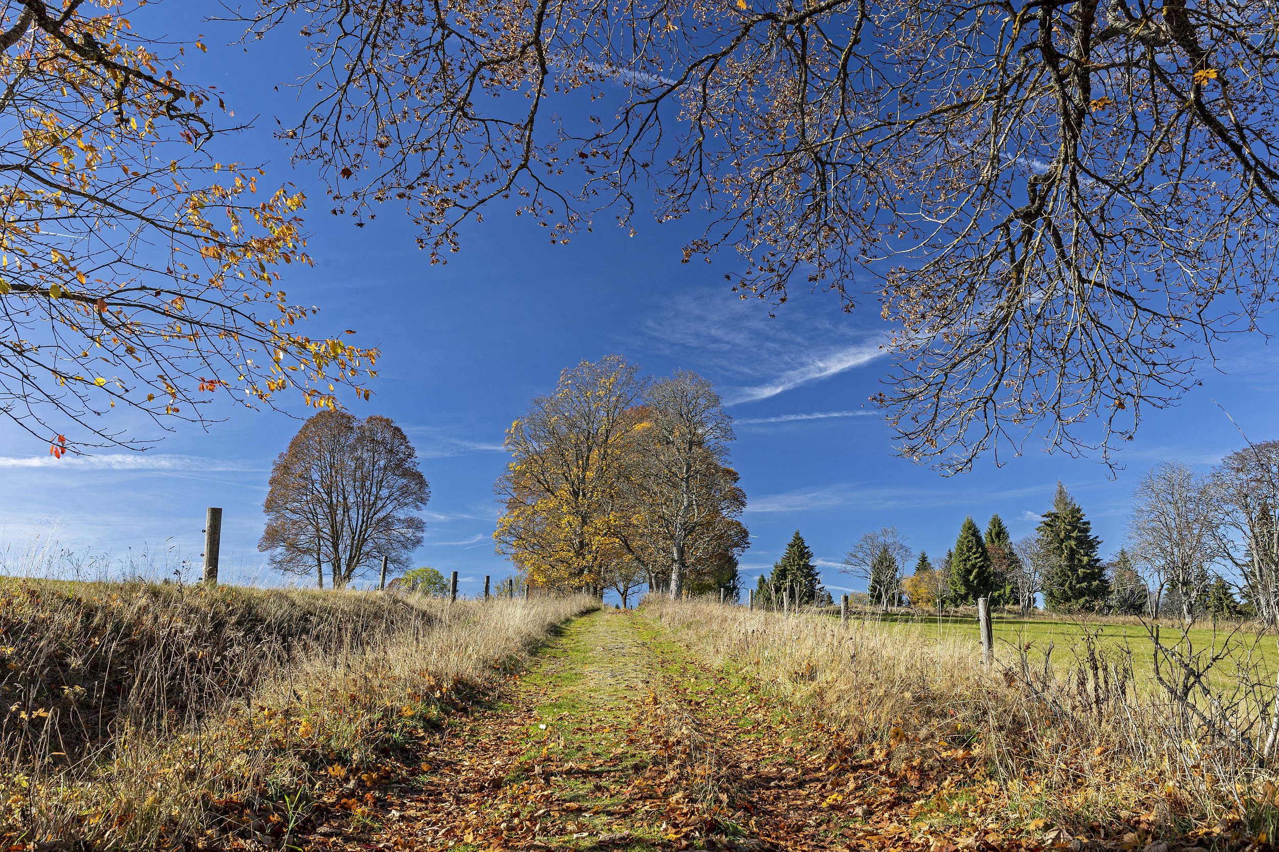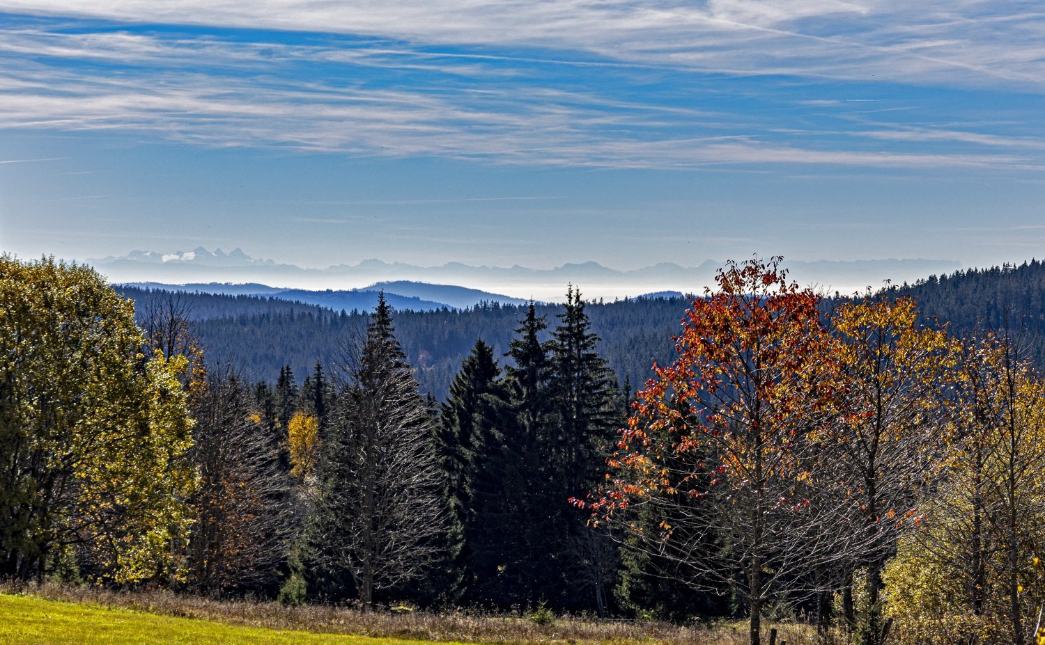 Knížecí Pláně (1000 m n. m.) na Šumavě 17. října 2022 - oproti jiným rokům je tu v polovině října na stromech již méně listí