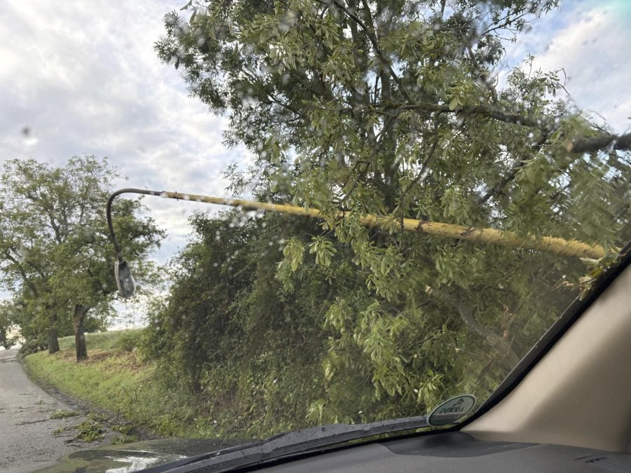 Škody po noční bouřce v Benešově - vítr vyvrátil nejen stromy, ale i lampu, zdroj: benesov-city.cz