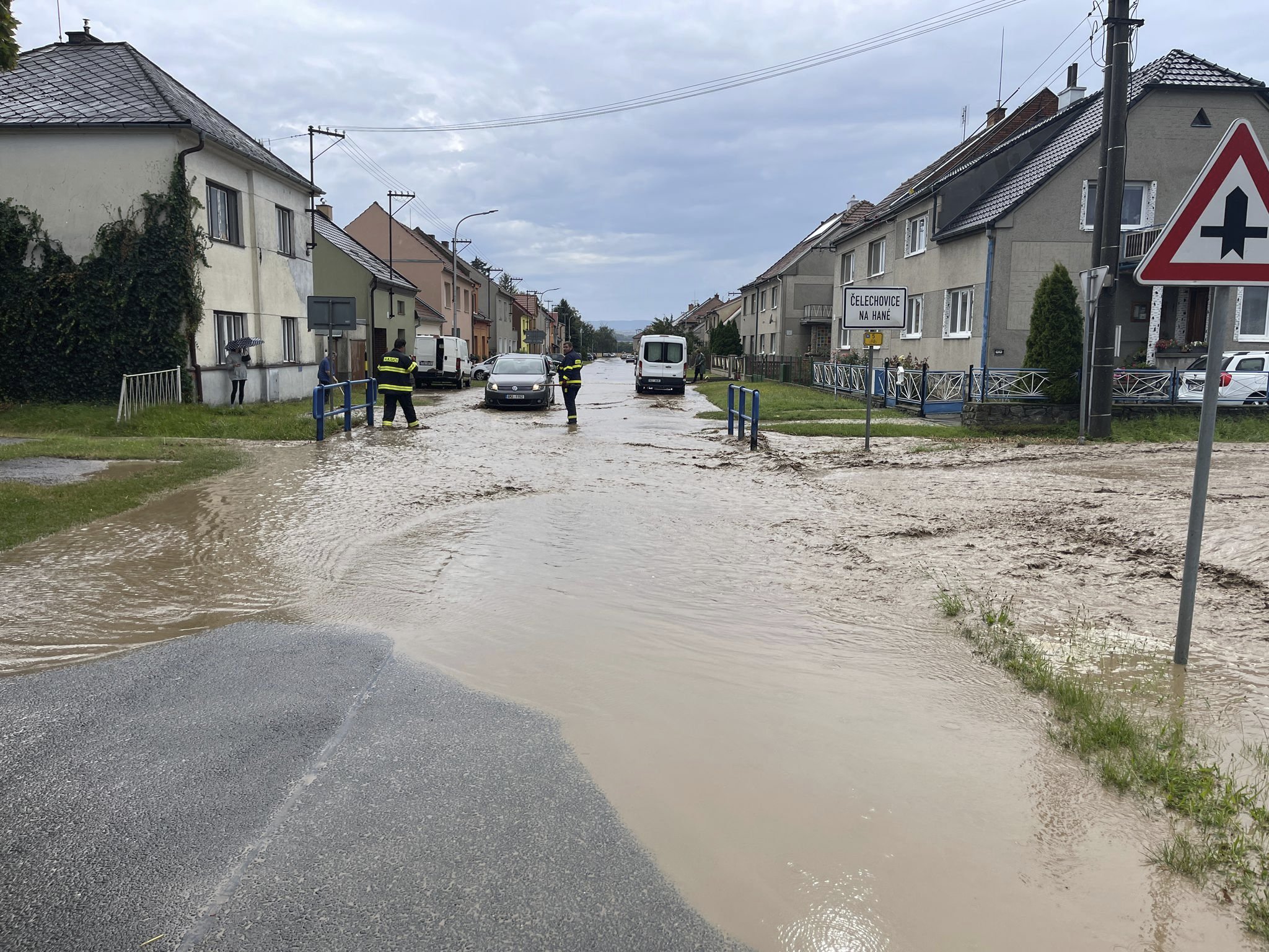 Během silných bouřek byla vodou z polí zaplavena část Čelechovic na Hané na Prostějovsku