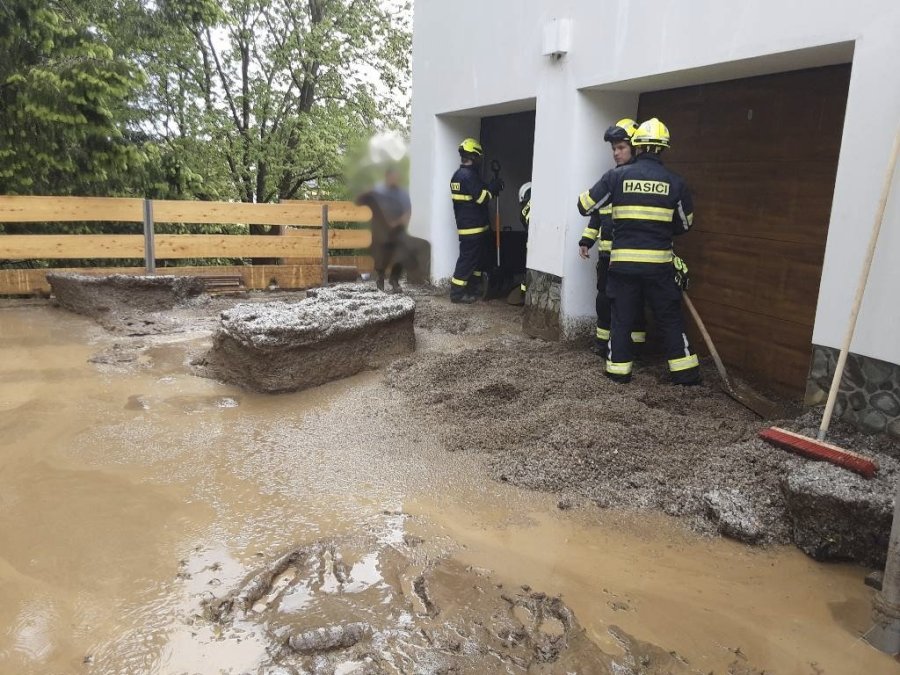 Dalešic dnes odpoledne - hasiči odstraňovali nánosy bahna a krup, zdroj: hzscr.gov.cz