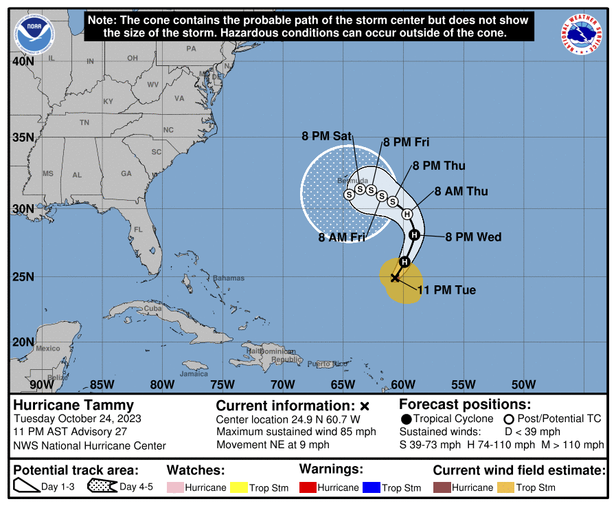 Hurikán Tammy zatím setrvává mimo obydlená území, ale o víkendu by mohl částečně zasáhnout Bermudy