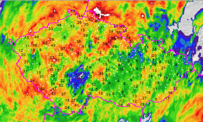 Česko zasáhl vydatný déšť, stanice naměřily i přes 100 mm srážek