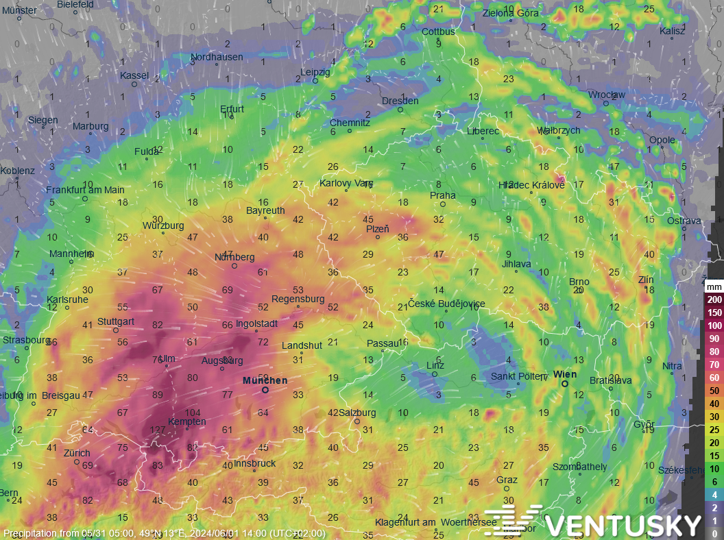 Naprší u nás i přes 50 mm srážek, na jihu Německa čekají až 150 mm
