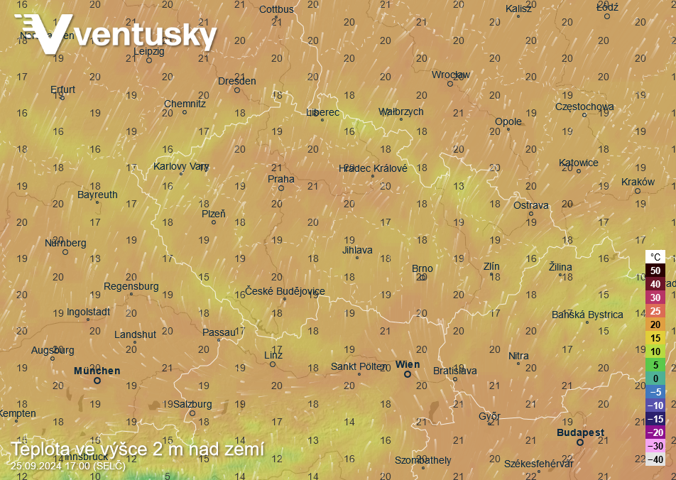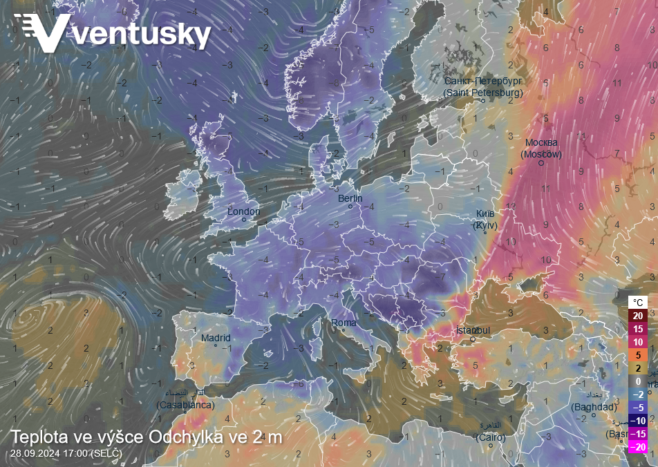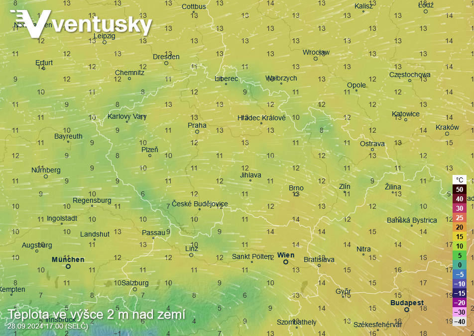 Očekávané teploty v sobotu odpoledne - klesnou pod 15 °C