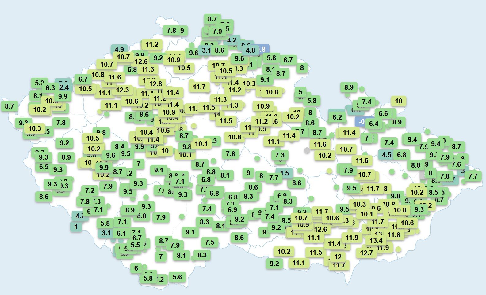 Dnešek byl až rekordně chladný, na hřebenech Jeseníků napadl sníh