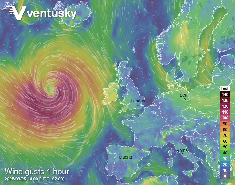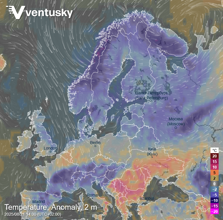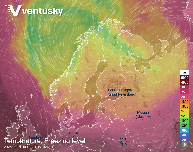Nulová izoterma (výška, od které mrzne) dnes odpoledne - na severu Evropy již klesla na úroveň hor