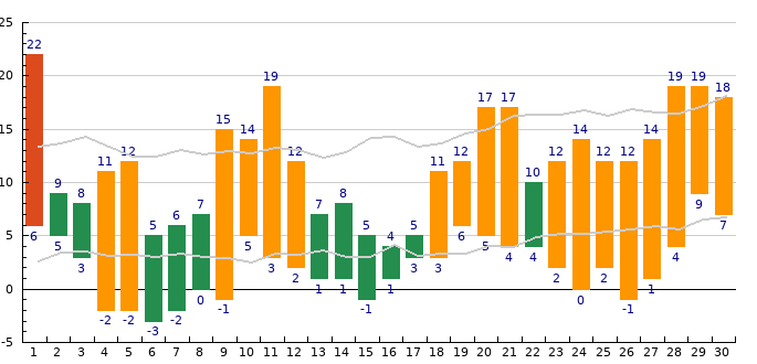 Nejchladnější duben v historii měření se u nás vyskytl v roce 1839 - takto vypadala denní maxima a minima na stanici v Praze - Klementinu
