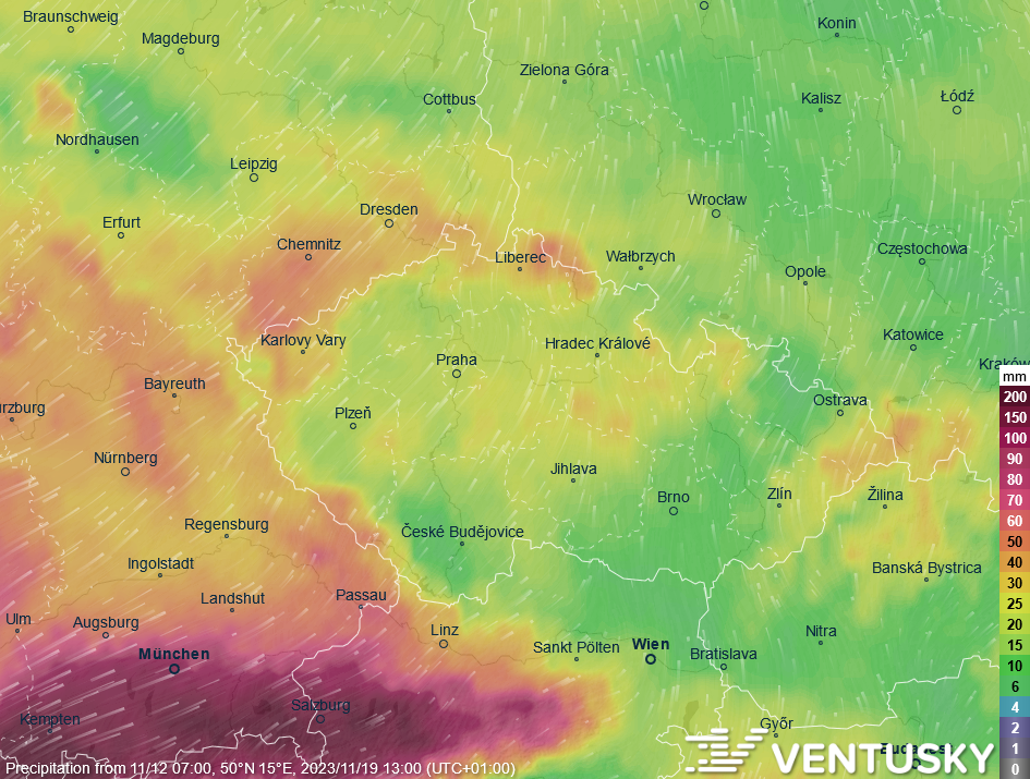 Očekávané srážkové úhrny v novém týdnu - na horách může spadnout i 50 mm srážek, jinde to bude od 10 do 30 mm