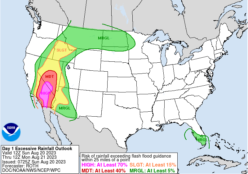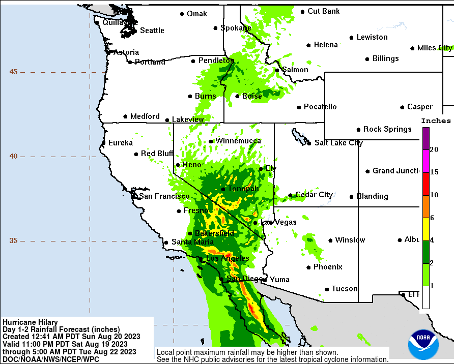 Očekáváné množství srážek od neděle 8:00 SELČ do úterý 14:00 SELČ v palcích (1 inch = 25, 4 mm, 6 palců = 152,4 mm
