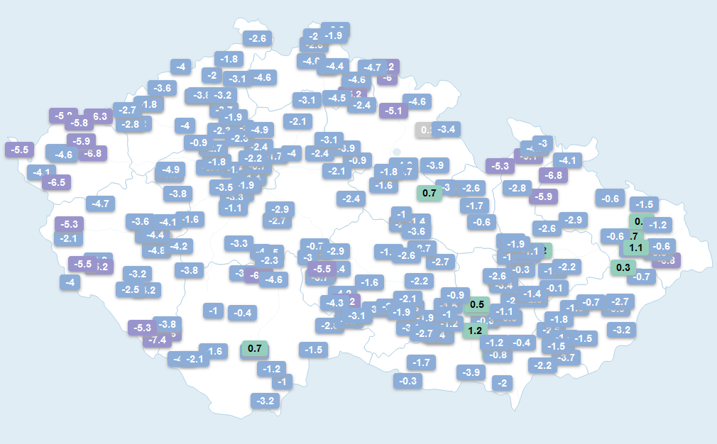 Na horách lehce nasněžilo, teplota klesla i na -10 °C