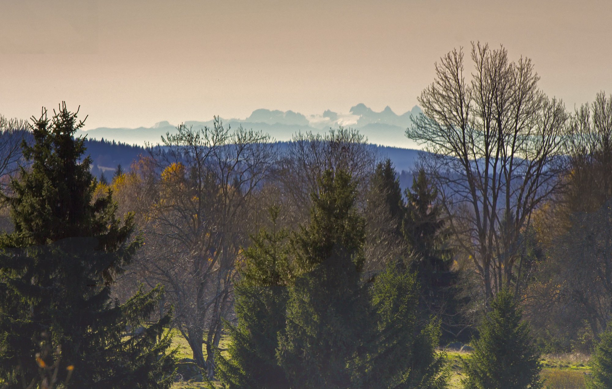 Hory hlásí slunečno a průzračný vzduch, z Šumavy jsou vidět Alpy