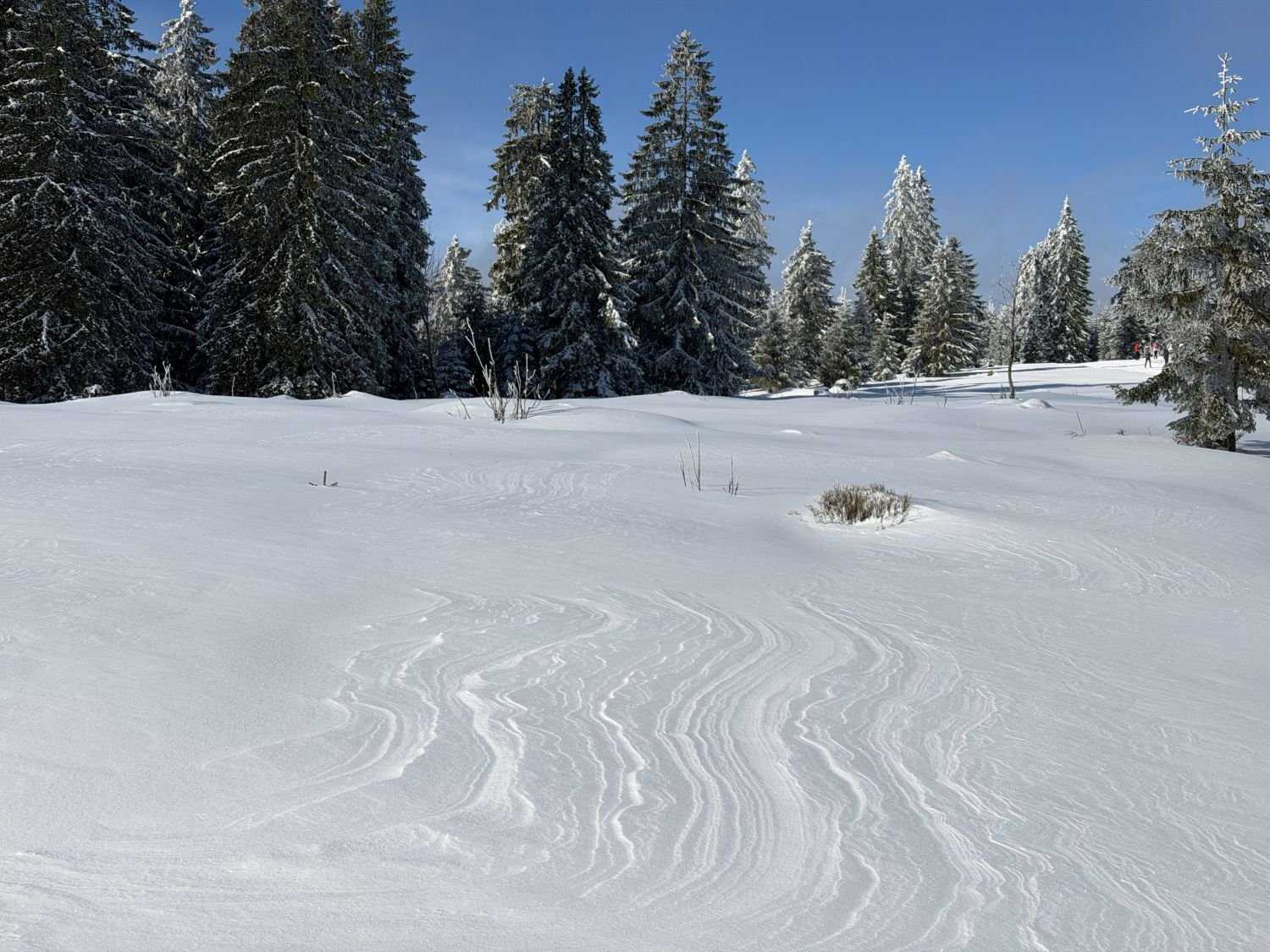 Sněhová pokrývka pod Velkým Javorem (1150 metrů nad mořem) - leží zde 35 cm sněhu