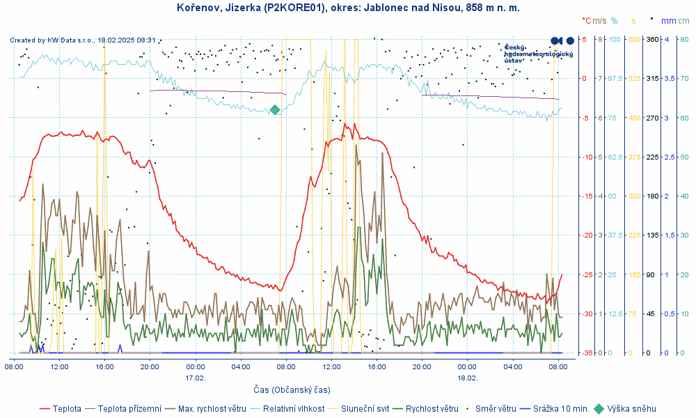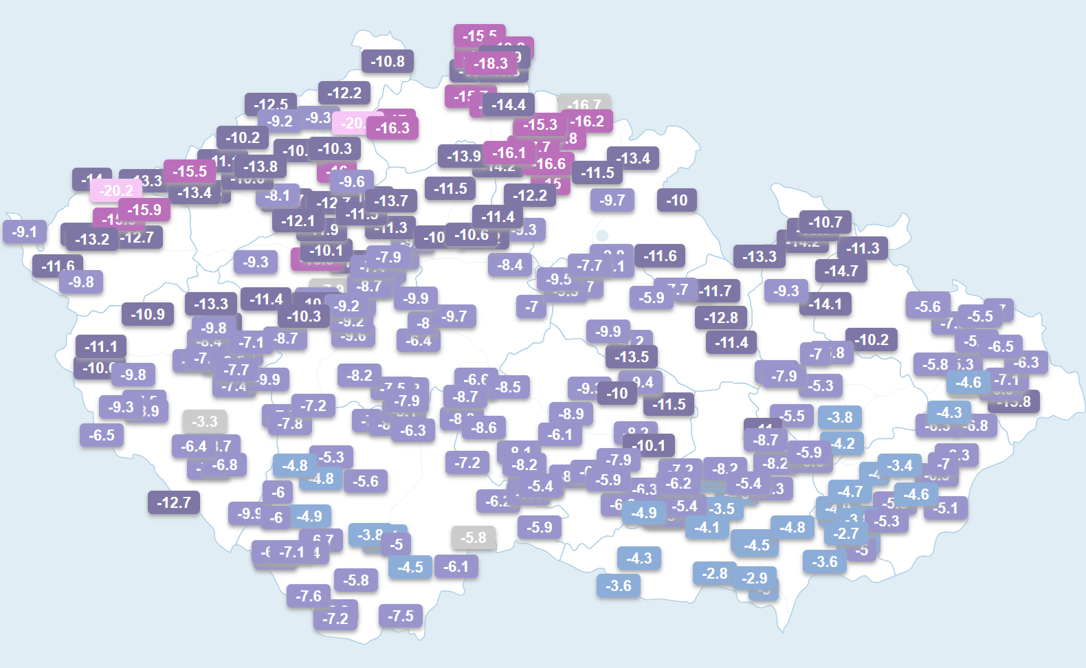 Na Jizerce teplota klesla až k -30 °C, zítra mrazy zesílí i na Šumavě