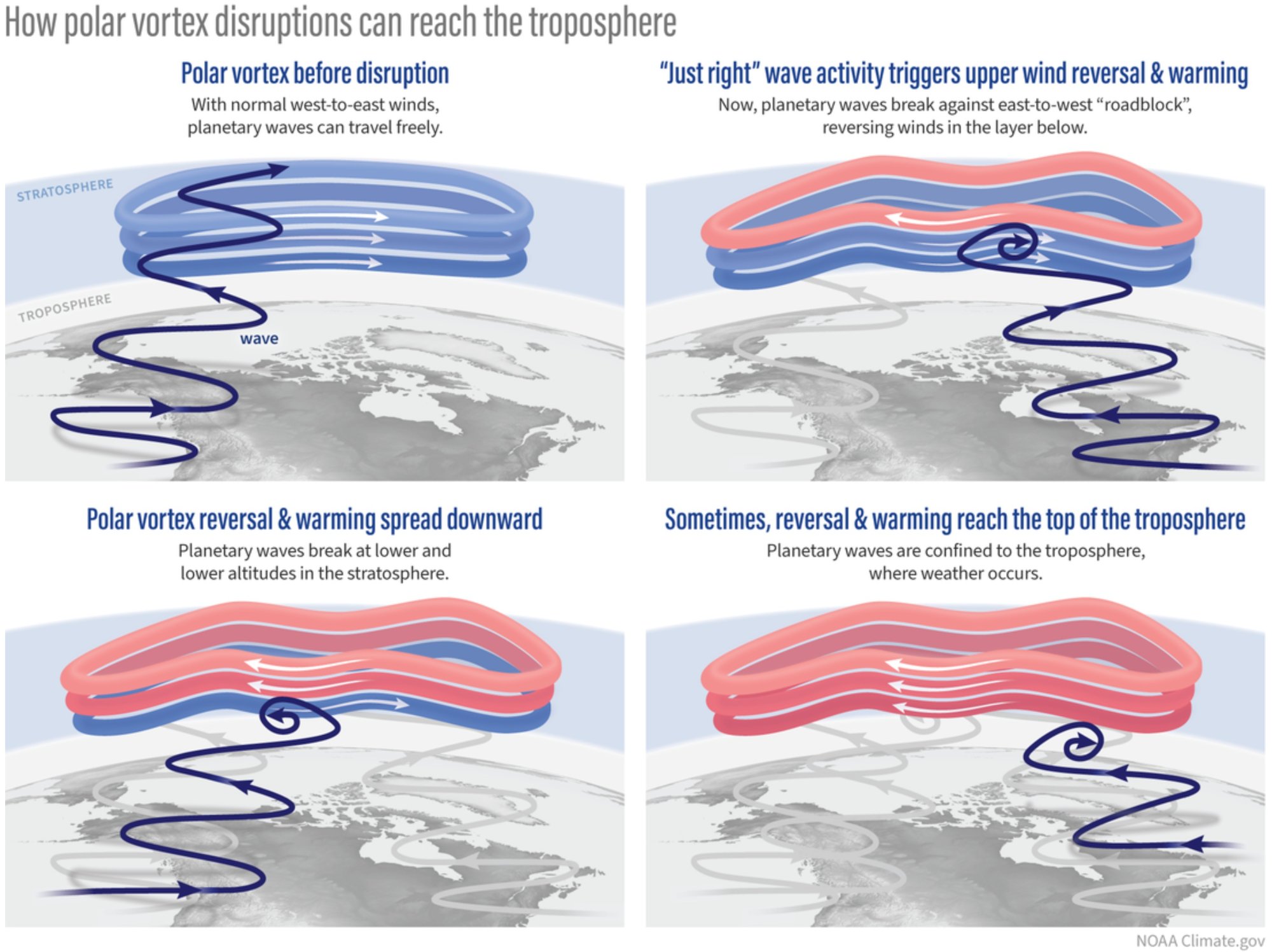 Obr. 1 Průměrná rychlost zonálního větru na 60. rovnoběžce severní z. š. v tlakové hladině 10 hPa (přibližně 30 km) v letošní sezóně (červeně a růžově)