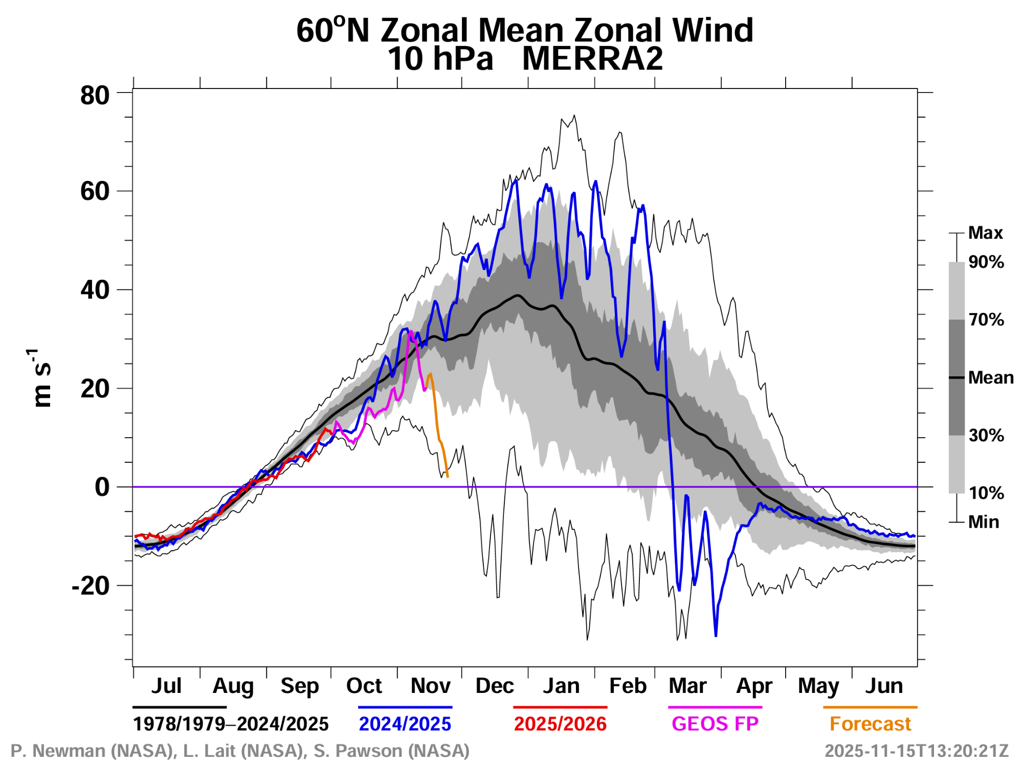 Koncem listopadu dojde k mimořádně neobvyklému narušení polárního víru