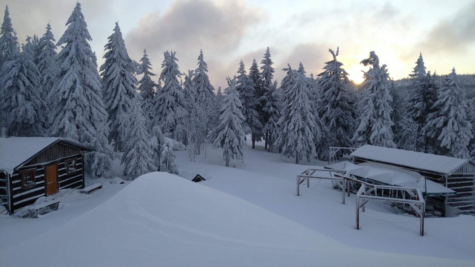 Bučina u Kvildy na Šumavě dnes ráno - leží zde 112 cm sněhu (připadlo 30 cm)