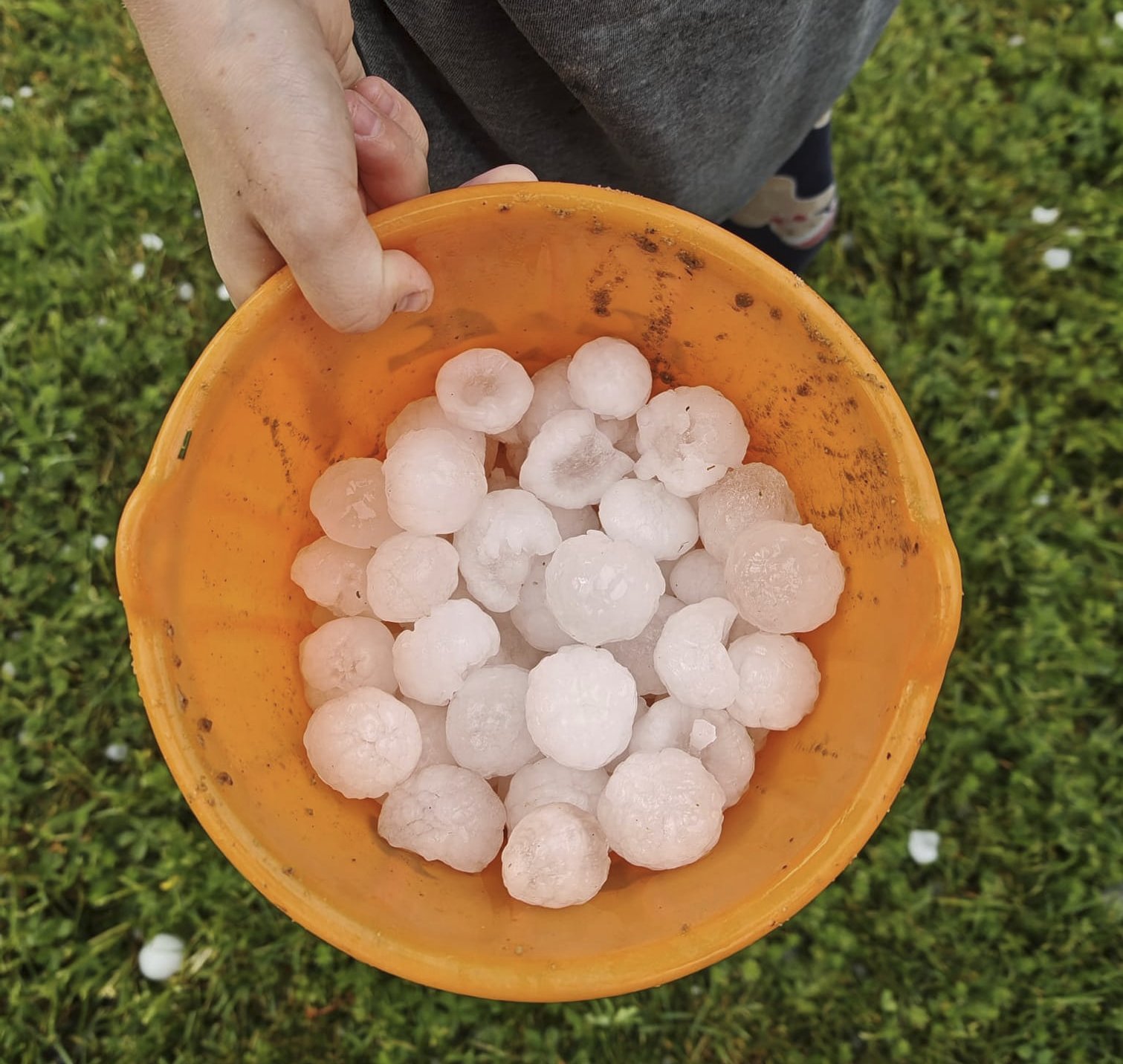 Okřínek u Poděbrad - kroupy o velikosti 3 až 4 cm