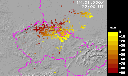 Ve čtvrtek 18.1. přes naše území přecházely frontální systémy spojené s hlubokou tlakovou níží postupující od Dánska přes Baltské moře.
