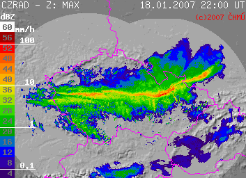 Od čtvrtečního rána bude jihozápadní vítr zesilovat na silný 8 až 13 m/s, s nárazy 15 až 25, na horách kolem 30 m/s. Ve čtvrtek odpoledne a v noci na pátek vítr dále zesílí na velmi silný 13 až 18 m/s, ojediněle kolem 20 m/s (síla vichřice), s nárazy 25 až 35 m/s, tj. 90 až 125 km/h, na horách kolem 40 m/s, ojediněle i vyšší, tj. kolem 145 km/h, což je síla orkánu. !!!! Na většině území ČR se bude jednat o mimořádně silný vítr !!!! Od čtvrtečního odpoledne začnou srážky, zejména na horách, postupně zesilovat. Od čtvrtečního odpoledne do pátečního večera se očekávají srážkové úhrny na návětrných stranách hor od 30 do 80 mm, v Beskydech a v Krušných horách do 40 mm. Během pátku zde začnou srážky přecházet ve sněhové. Vzhledem k předpokládaným srážkám v horských oblastech Čech očekáváme vzestupy hladin vodních toků odvodňující tyto oblasti, s možností překročení I. SPA ojediněle i II. SPA. Na horních tocích odvodňující Orlické hory hladiny někde přesáhnou i III.SPA.