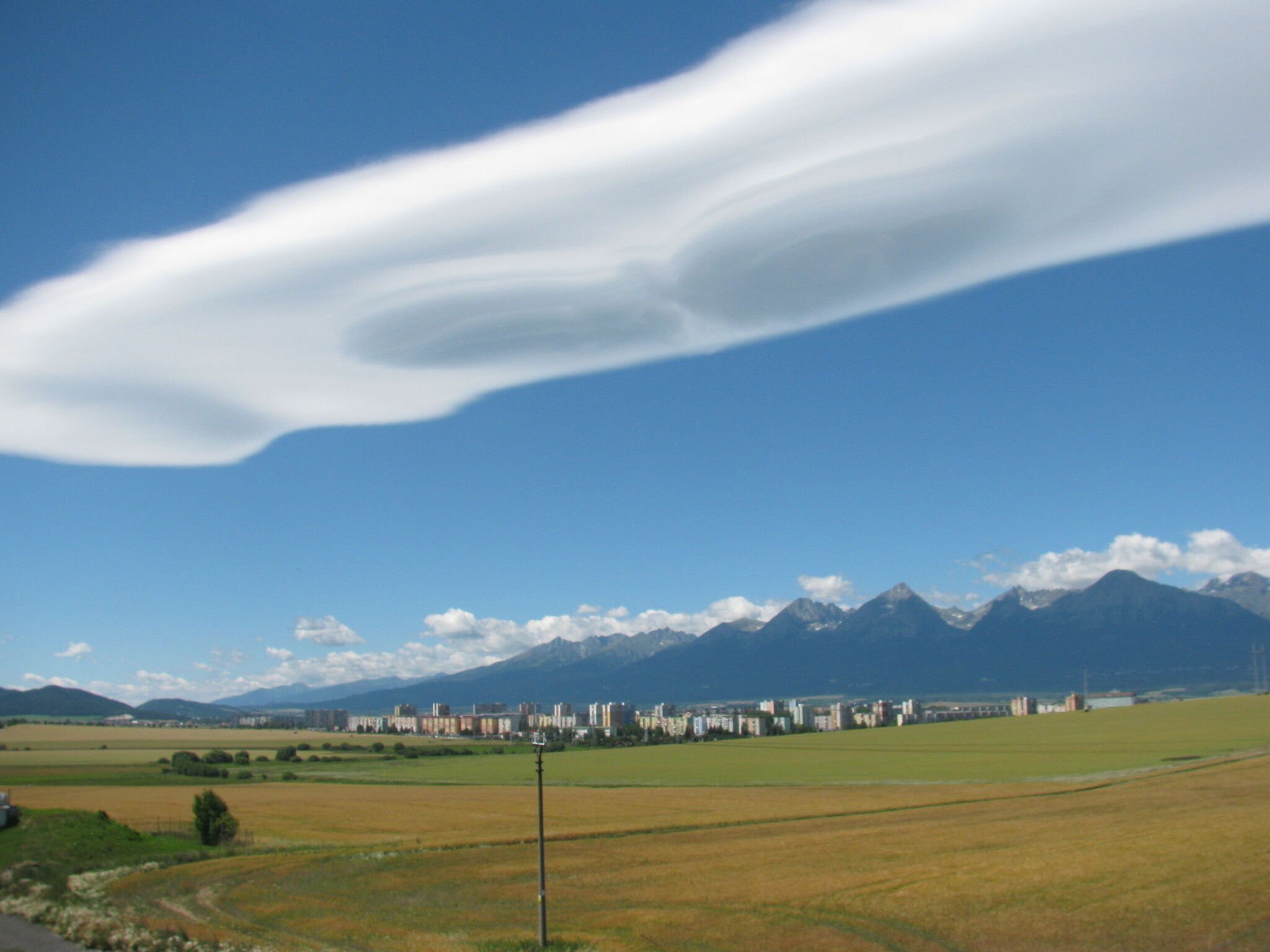 Četný altocumulus lenticularis na obzoru zachycený na Vysočině v obci Dolní Vilémovice (autor Matěj Dvořák)