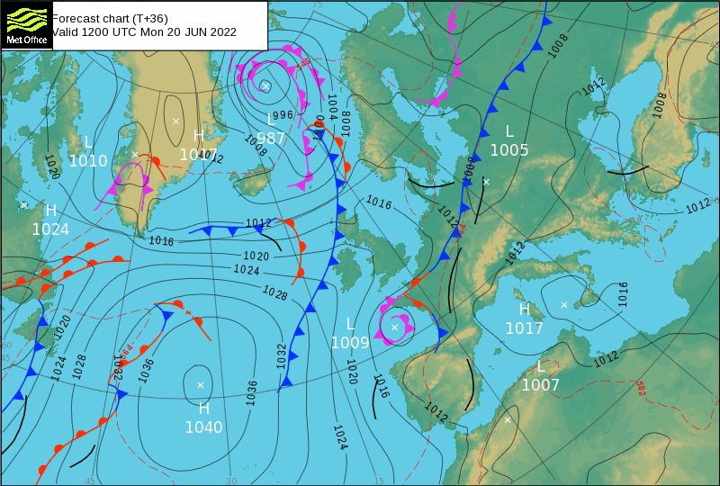 Synoptická situace v pondělí v poledne - počasí ve střední Evropě ovlivní studená fronta