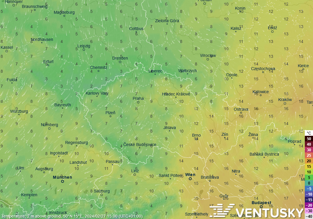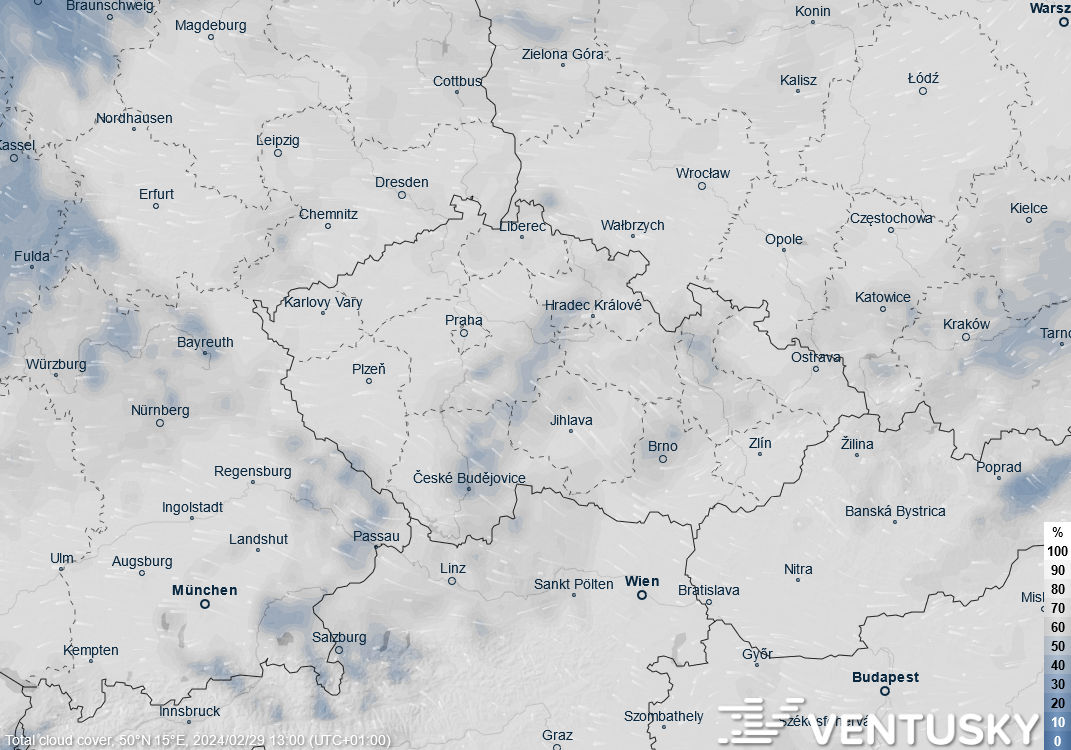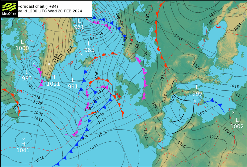 Synoptická situace ve středu v poledne - počasí u nás bude ovlivňovat oblast nižšího tlaku vzduchu a čeká se tak hodně oblačnosti