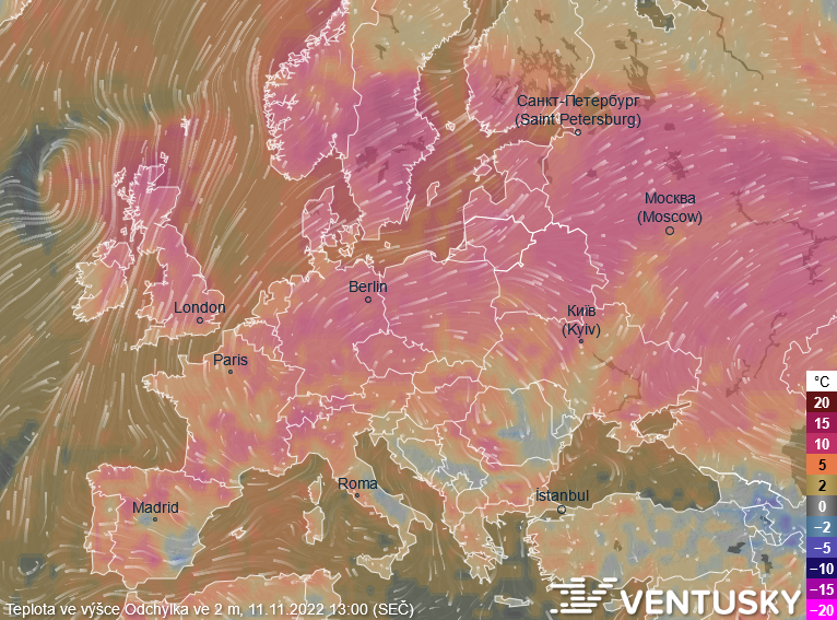 Synoptická situace v pátek odpoledne - počasí u nás bude ovlivňovat mohutná tlaková výše