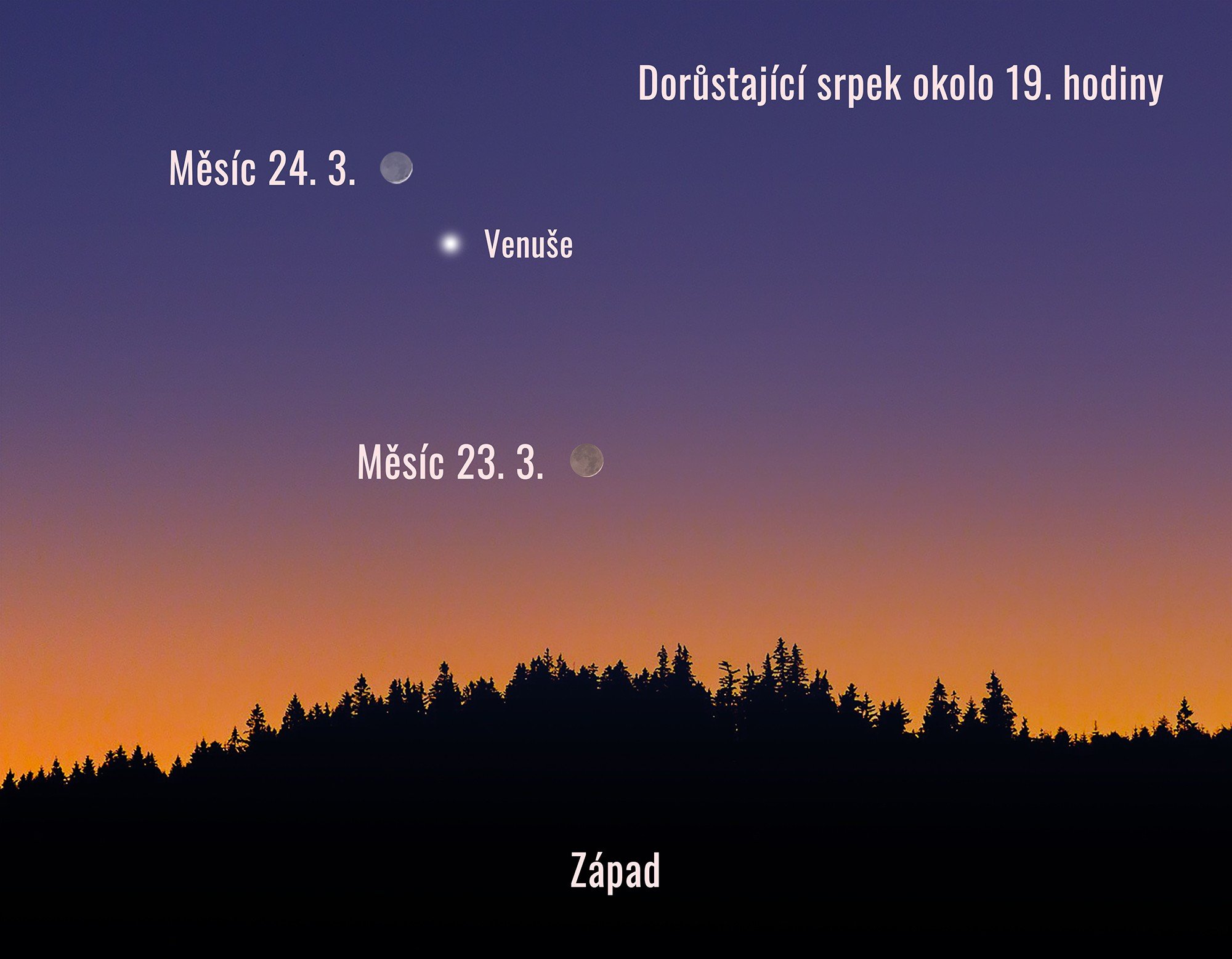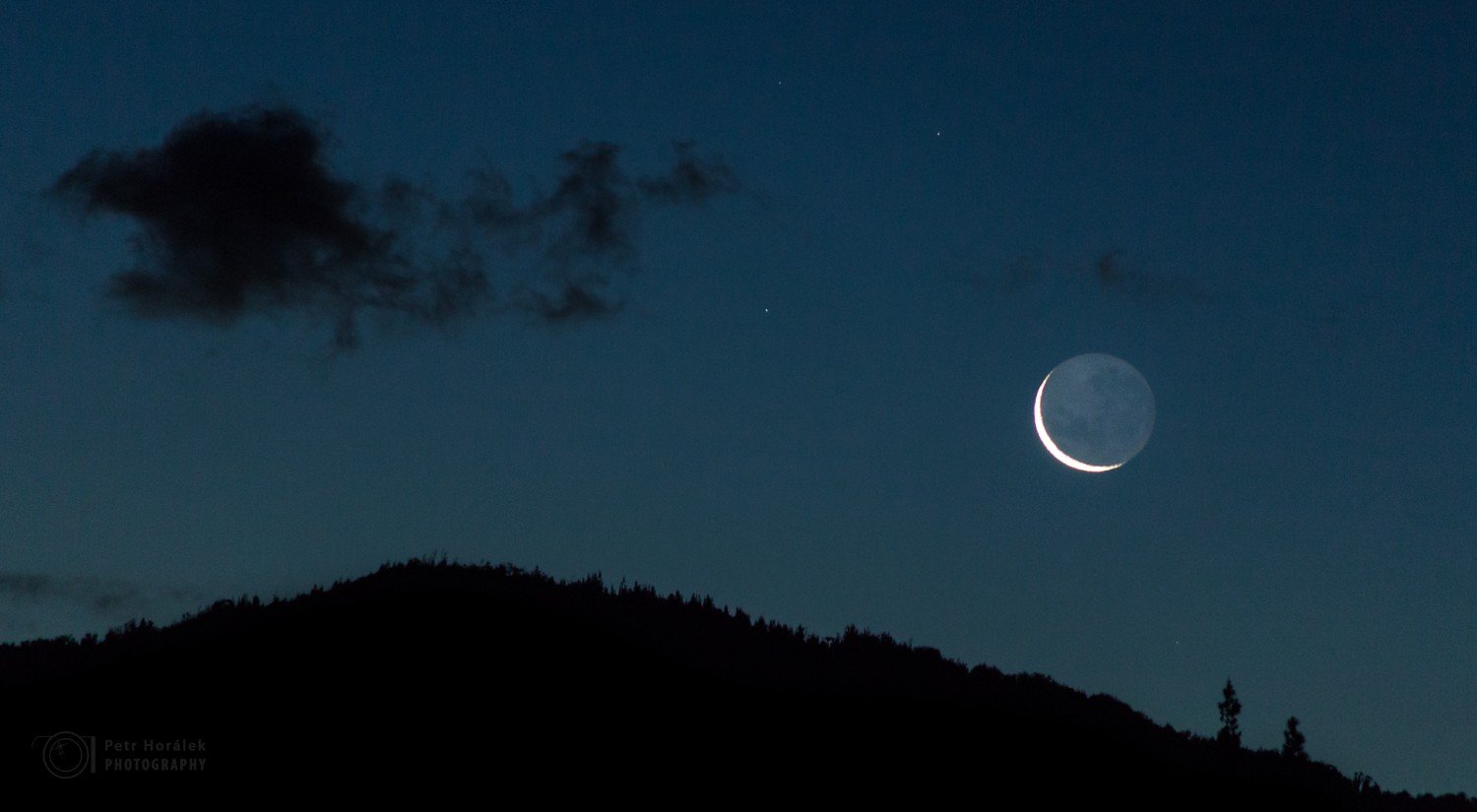 Večerní oblohu ozdobí úzký srpek s popelavým svitem