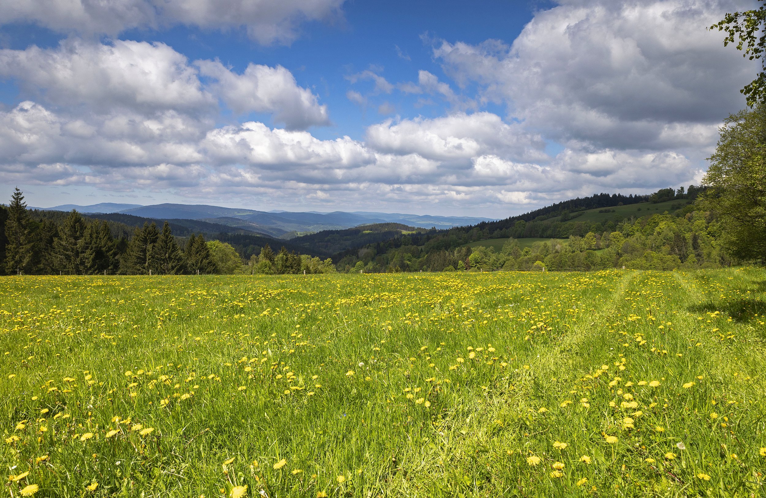 Kvilda (1150 m) - do vyšších poloh Šumavy ještě jaro pořádně nedorazilo, listnaté stromy jsou zde ještě holé